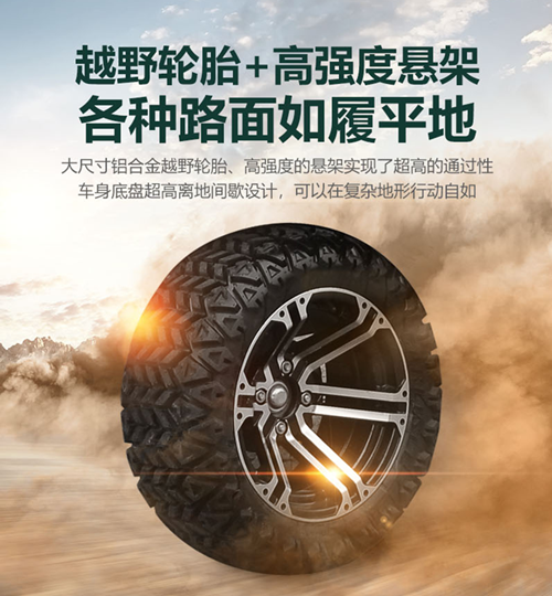 除了外觀,電動越野車的配置也讓客戶豎起大拇指。超強(qiáng)大功率交流電機(jī)、強(qiáng)悍的大尺寸越野輪胎配置高強(qiáng)度、高通過性懸架,使得電動越野車能夠適應(yīng)各種路況,復(fù)雜地形行走自如。