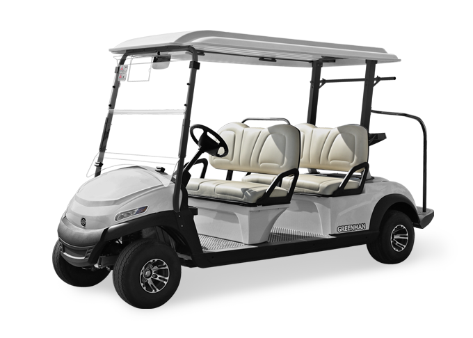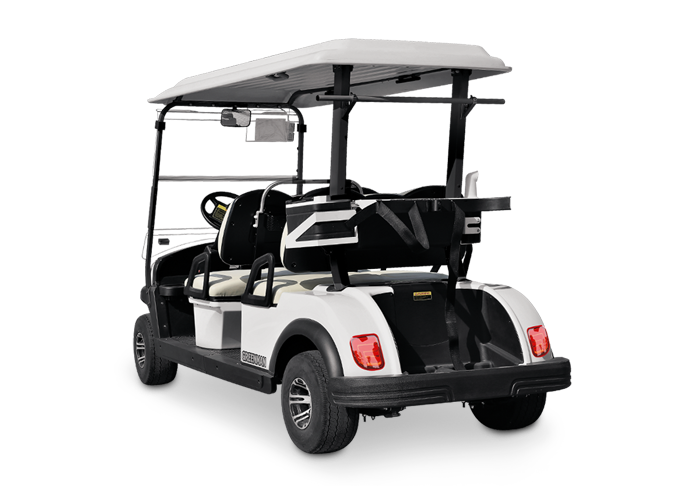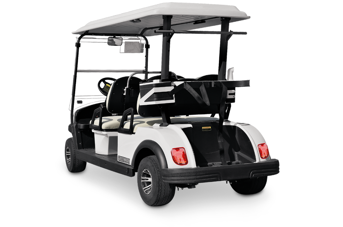 同向四座高爾夫球車,可以供4名球手和2名球童同時駕乘,也可以供3名球手和3名球童同時駕乘。