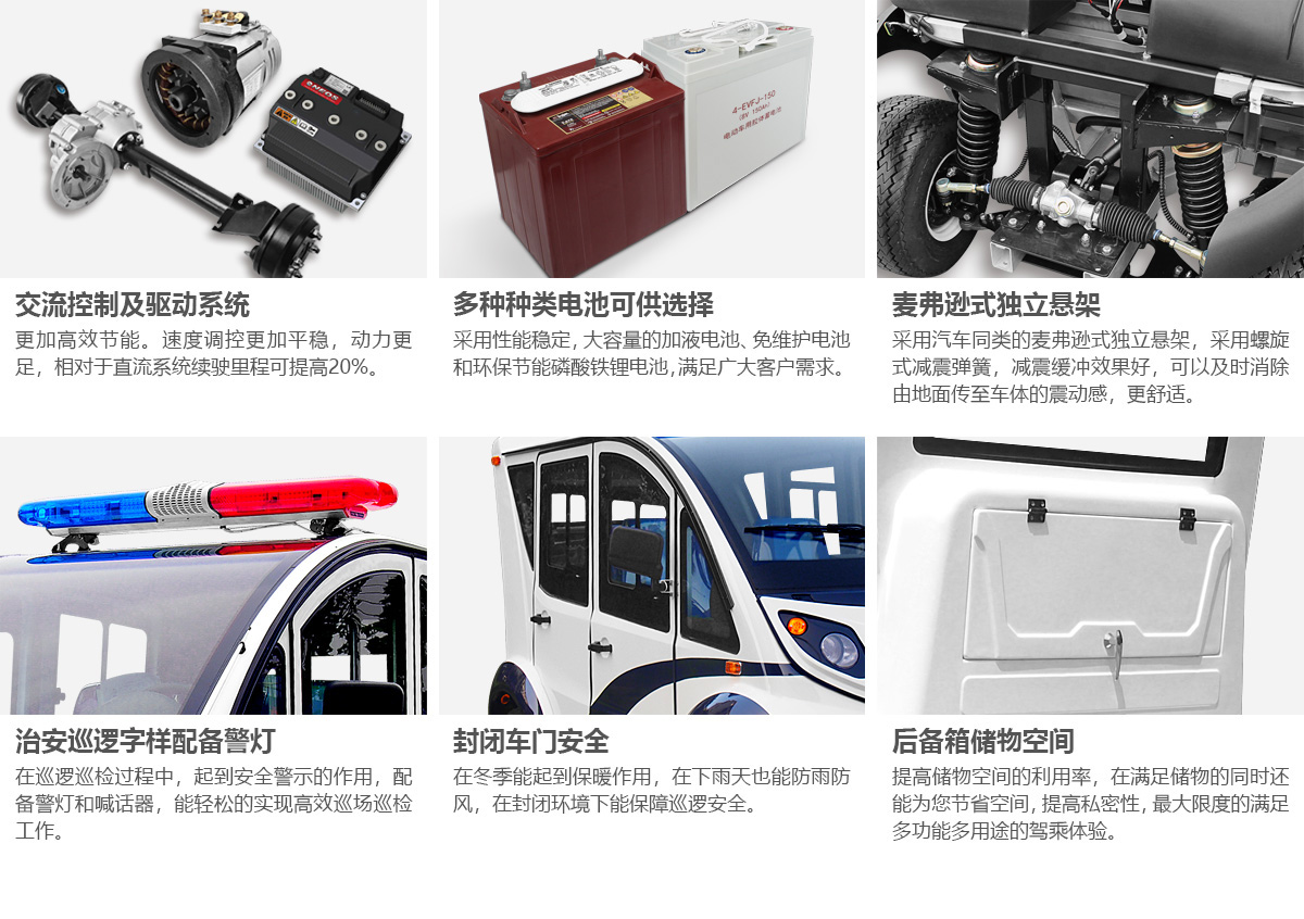 電動巡邏車注重實用性,集警燈、喊話器等警務系統于一體。